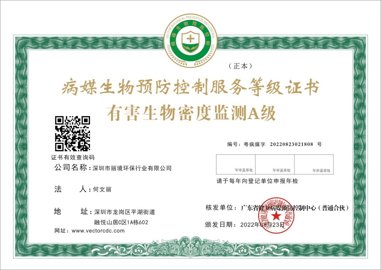 有害生物密度监测A级证书